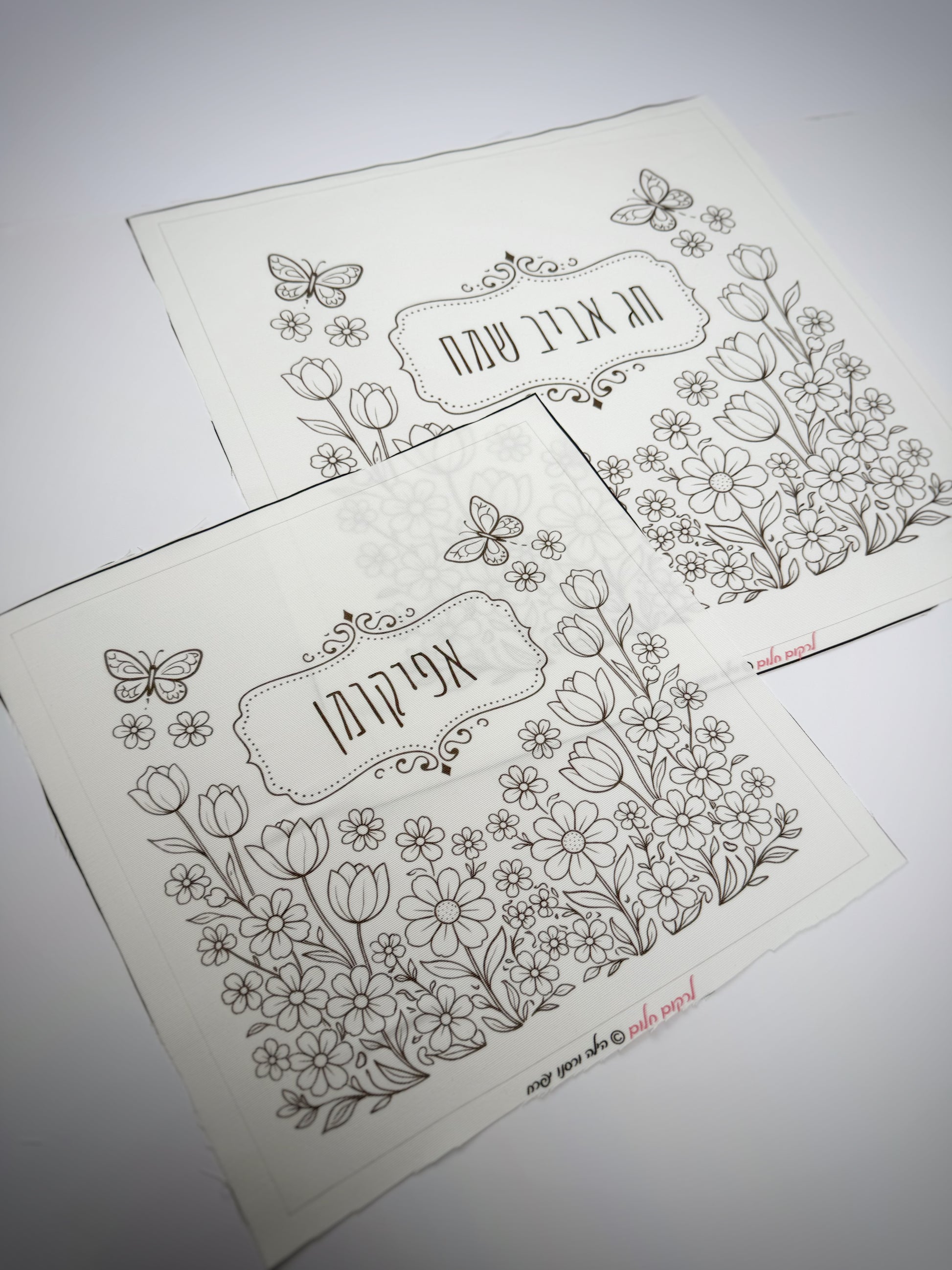 כיסוי מצות ייחודי מבד כותנה מבריק ואיכותי, בגודל 40/40 ס״מ, שמביא אל שולחן החג מגע יוקרתי, חגיגי ומלא משמעות. הכיסוי מיועד לרקמה אישית בעבודת יד, והופך כל יצירה ליצירה נצחית, כזו שתעבור מדור לדור ותשאיר זיכרון מתוק בכל ליל סדר ומפגש משפחתי סביב שולחן החג.
