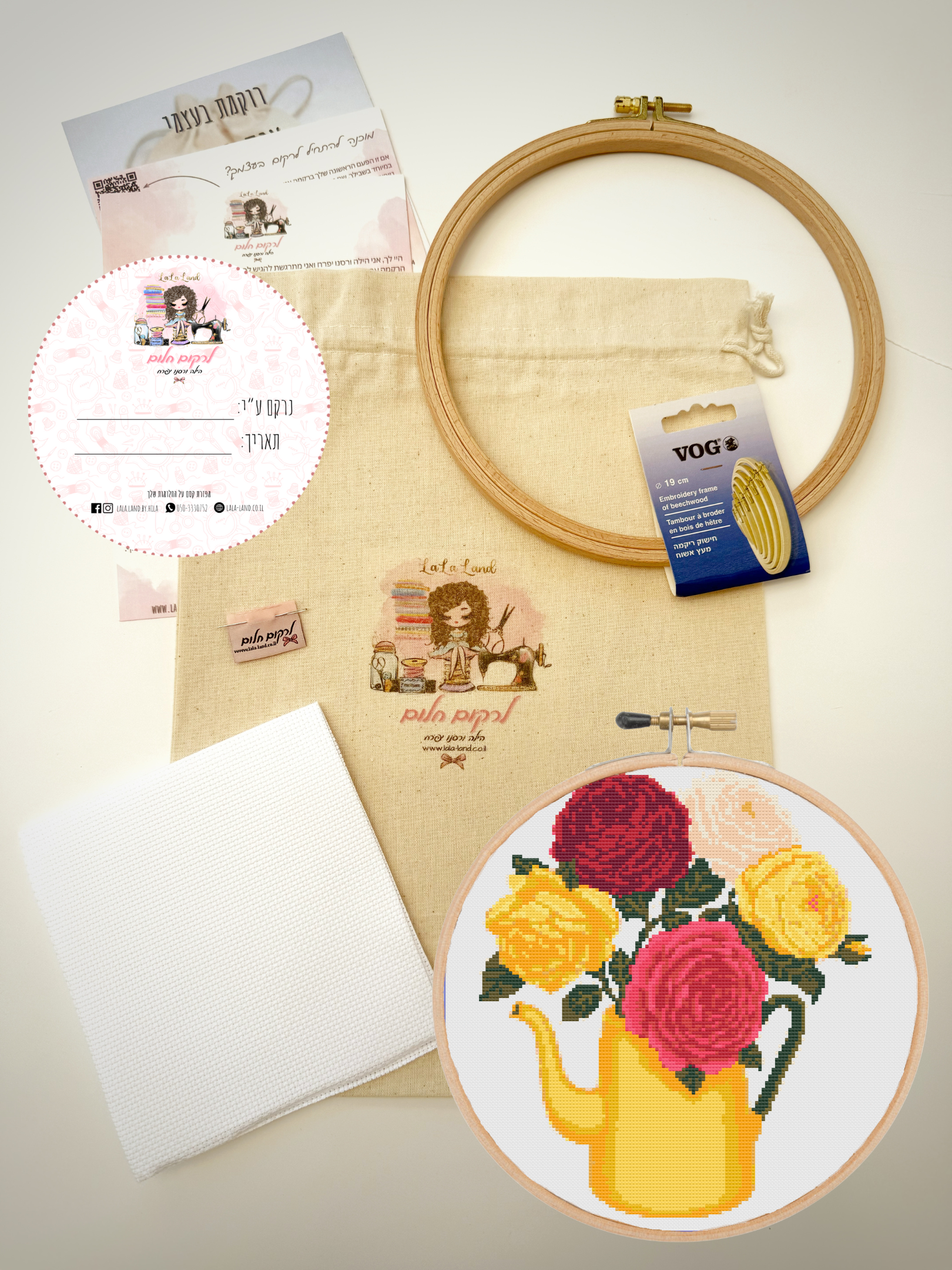 ולכן ערכת הרקמה מכילה כל מה שאת צריכה והכל בתוך שקית בד שמאפשרת לך ניידות.