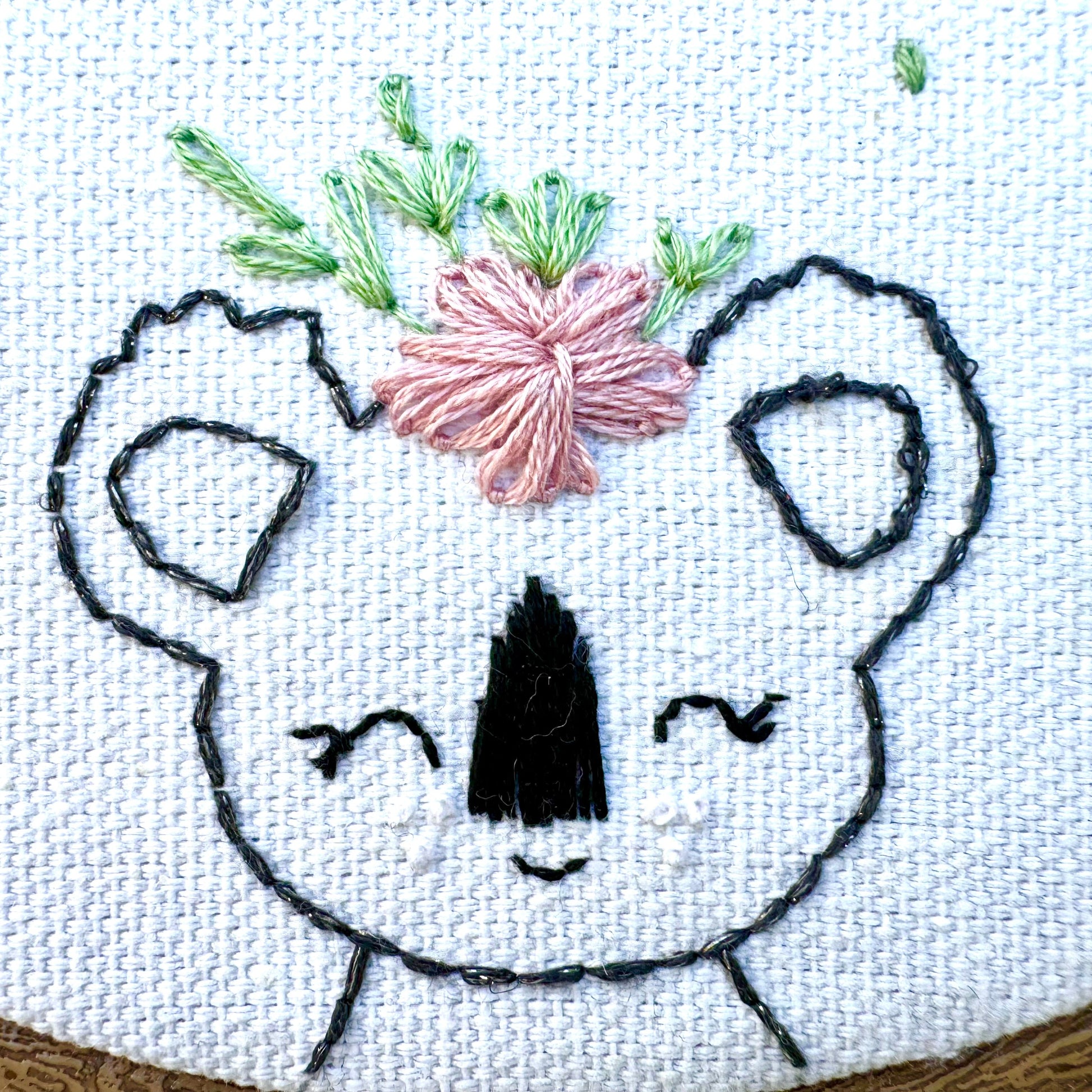 - 3 דוללות של חוטי רקמה DMC Mouline לפי הצבעים בסקיצה.