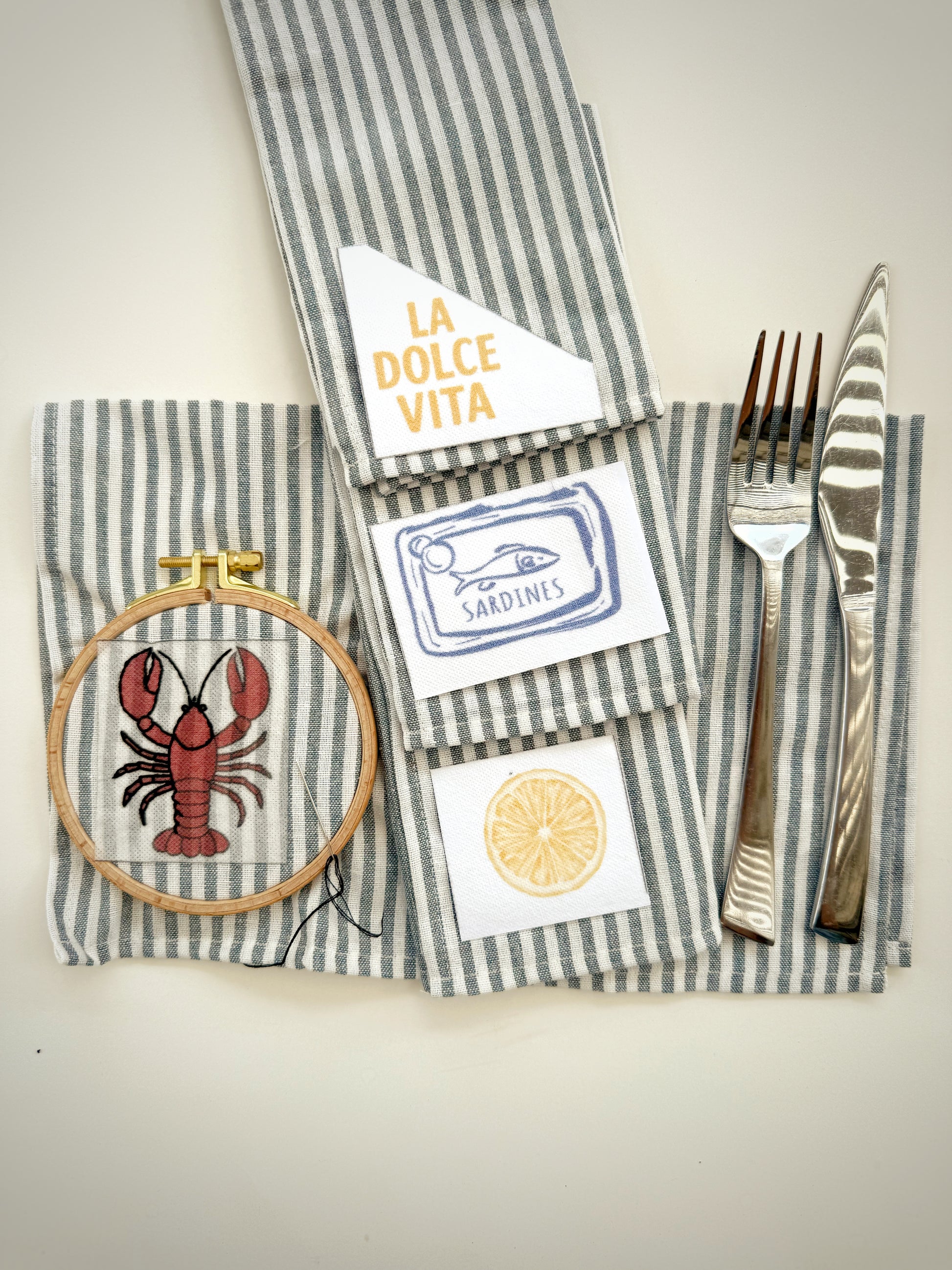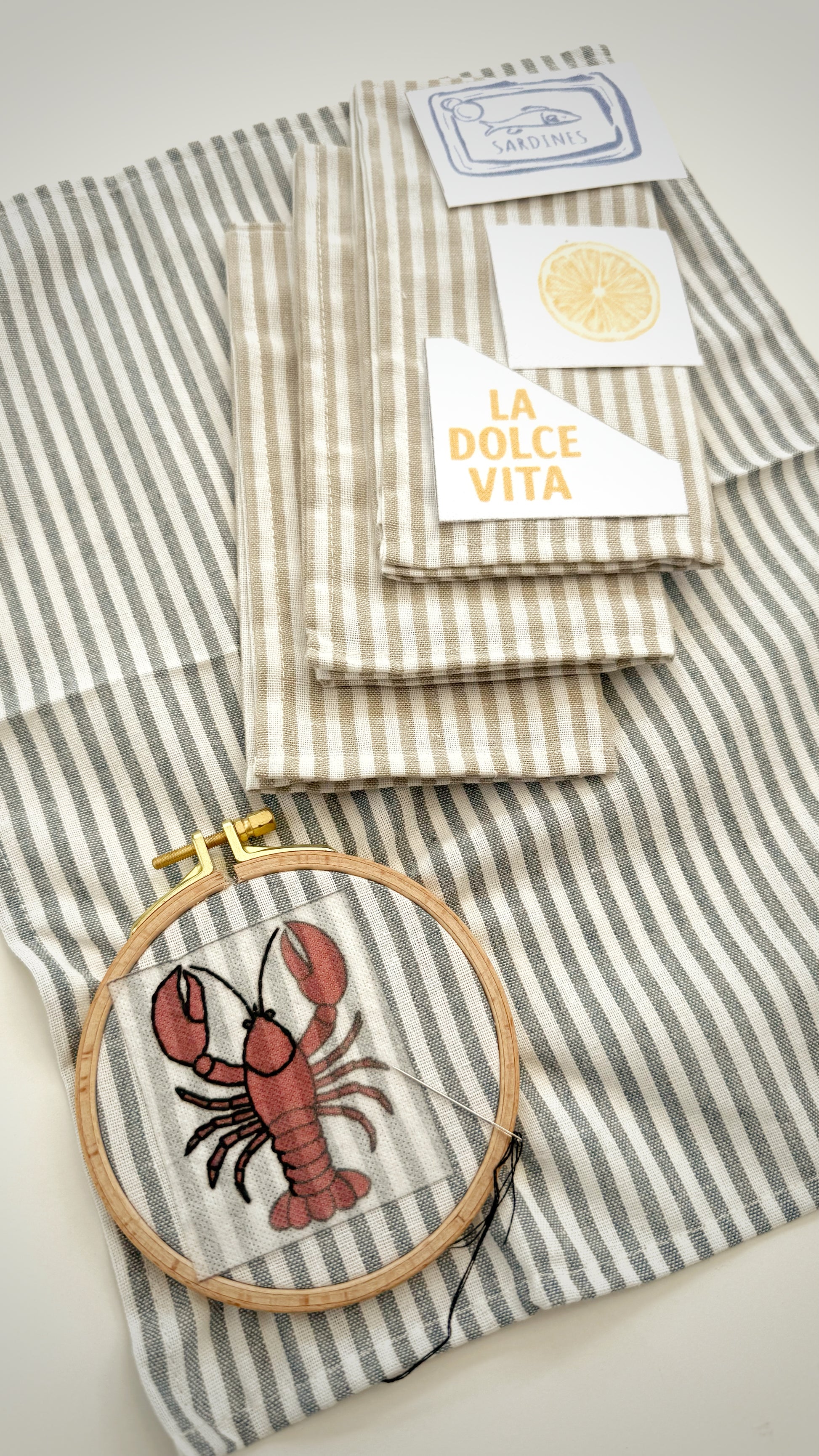 רביעיית מפיות בד המתאימות לרקמה עליהן.