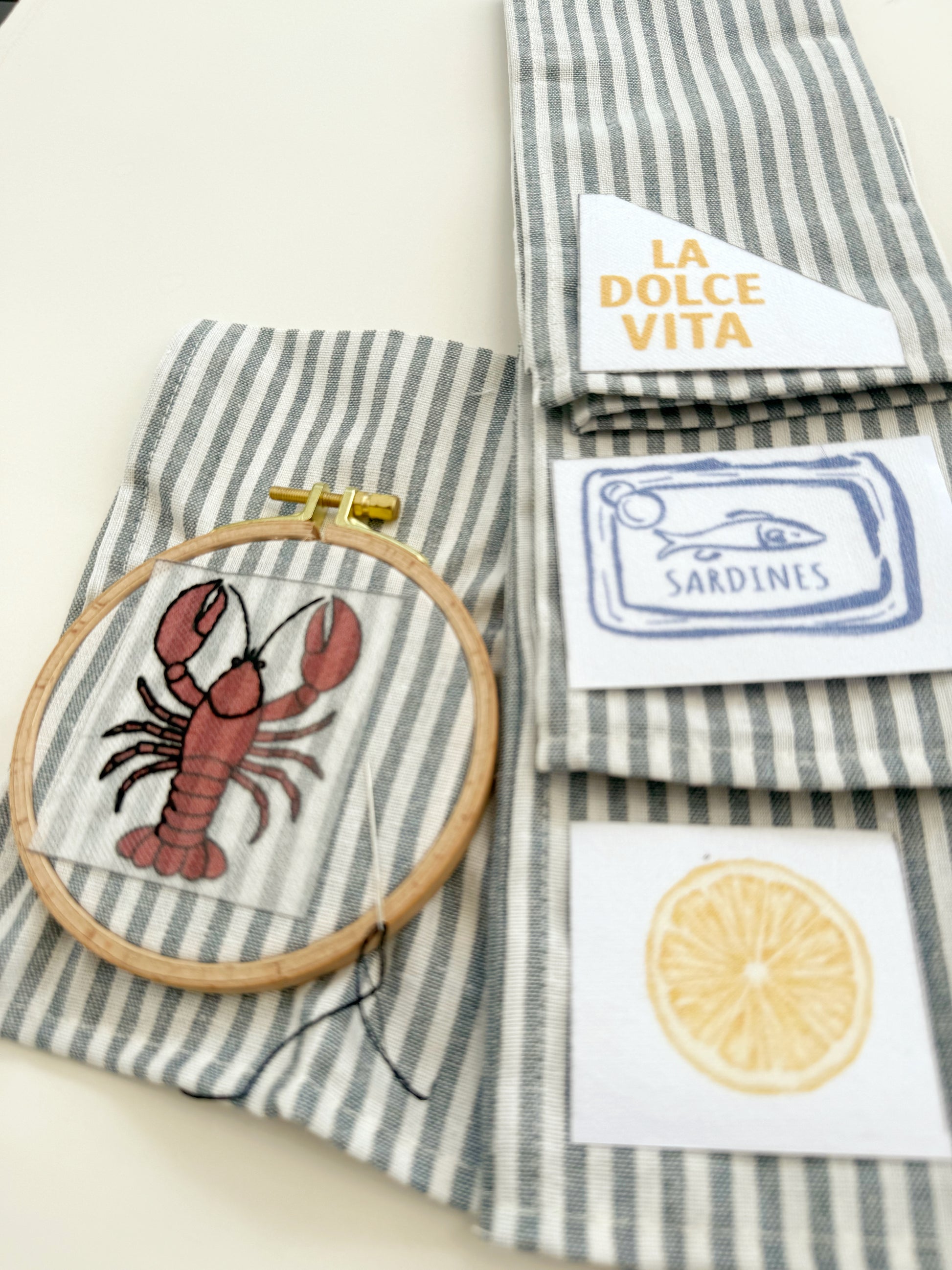 אני ממליצה לצרף חישוק 10 ס״מ, מדבקות רקמה וחוטים על מנת שיהיה לך את כל הציוד הדרוש לרקמה עליהם.