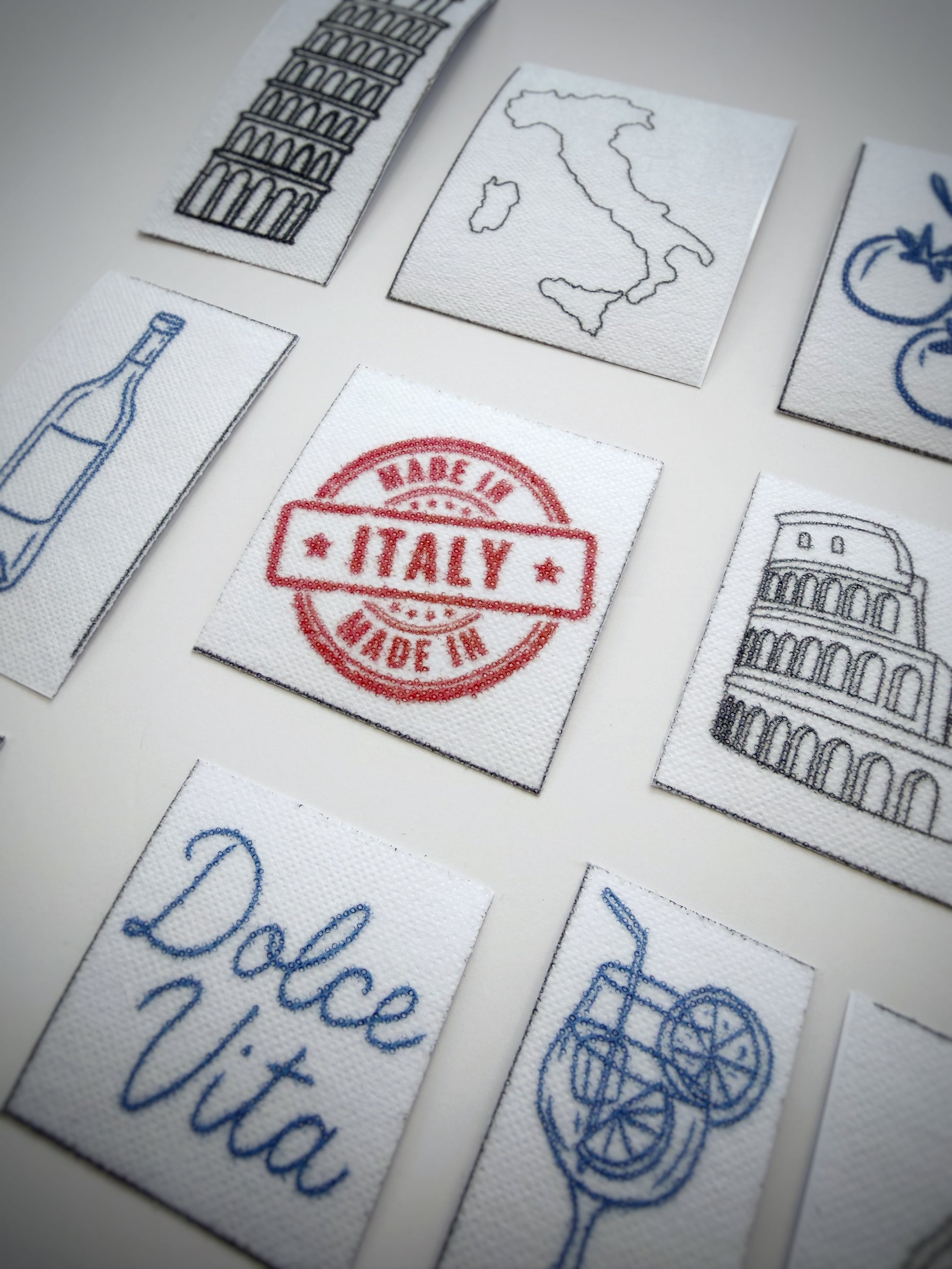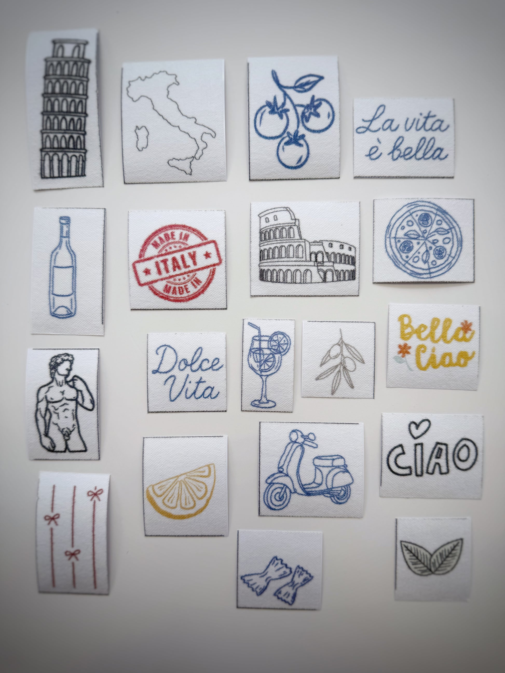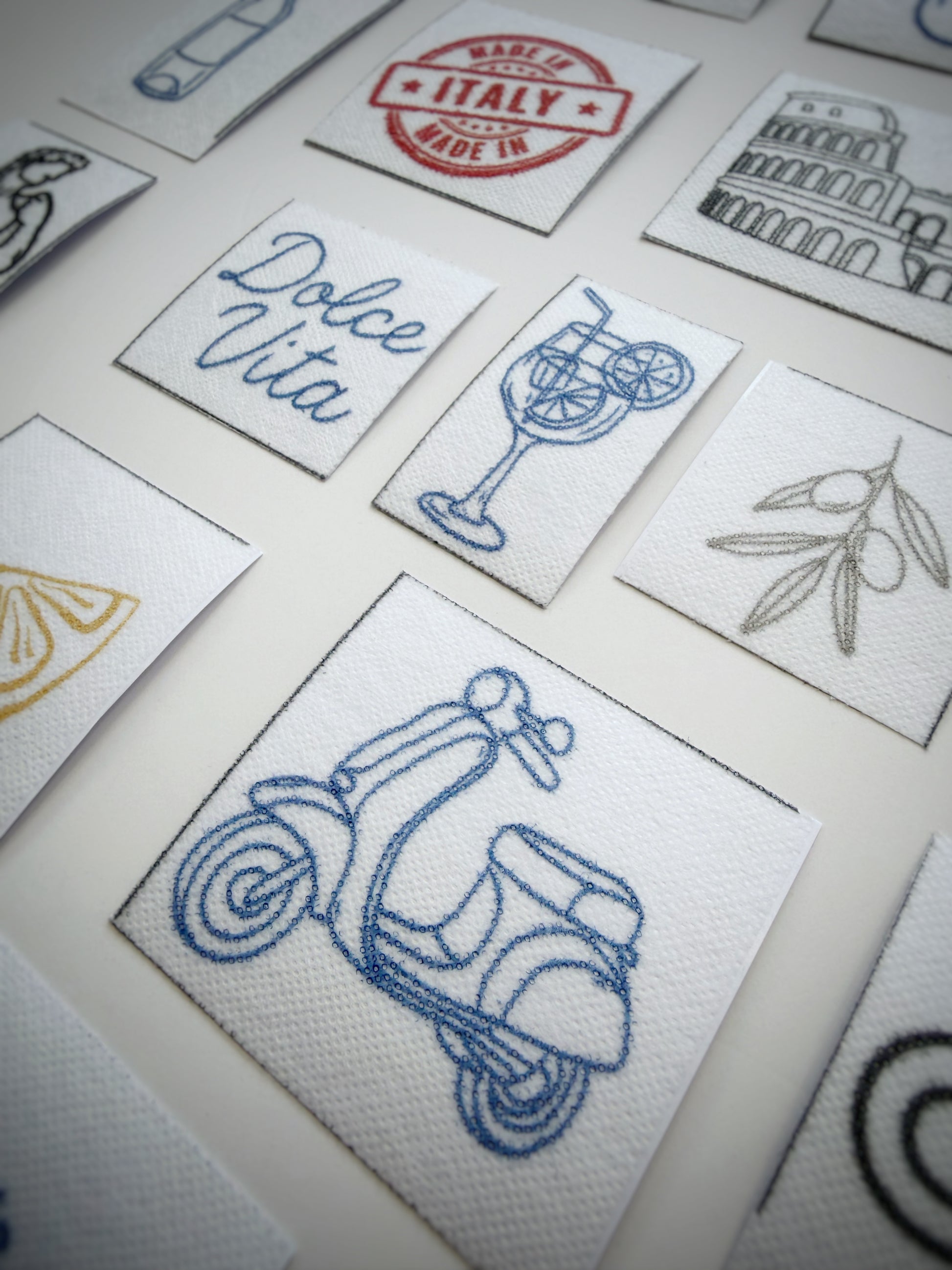 סט ייחודי של מדבקות רקמה Stick & Stitch של איורים איטלקיים במיוחד.