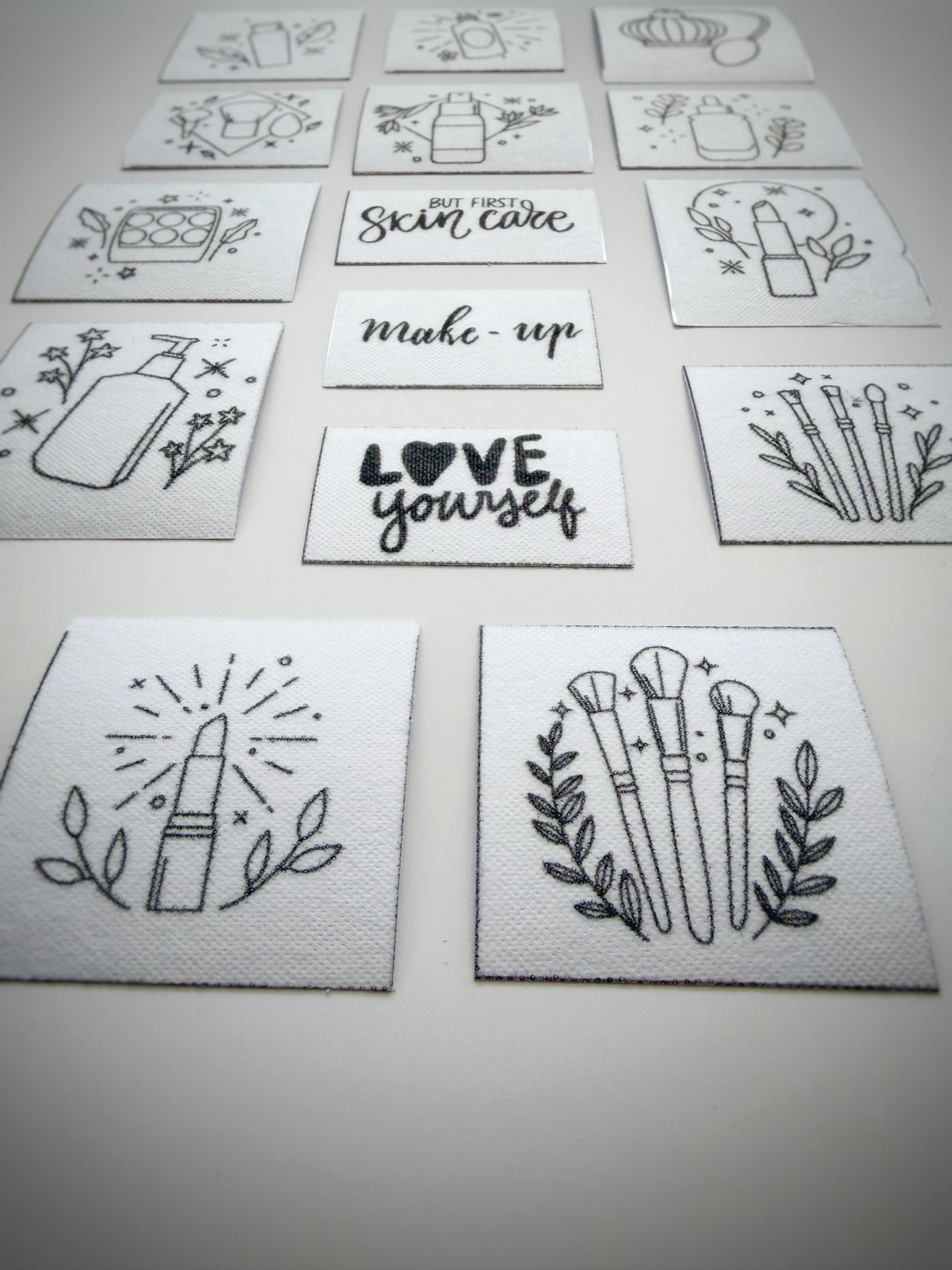 סט ייחודי של מדבקות רקמה Stick & Stitch של איורים לחובבות איפור וטיפוח.